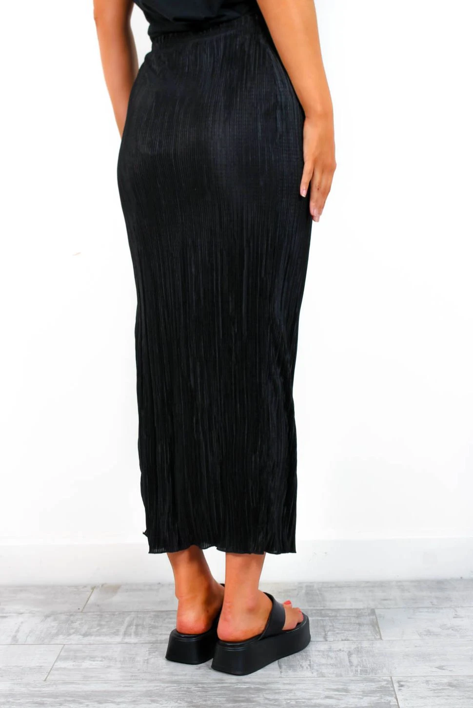 Absolute perfection! This trendy plisse midi-maxi skirt is the perfect mix of sophistication and style, showing off a high rise and elasticated waist to give you that comfy flattering fit, and a playful side split and chic black plisse to give it some extra oomph. Go for gold accessories and barely-there heels for dressier days, or team with chunky sandals and an oversized tee for that ‘off-duty but make it fashion’ vibe.