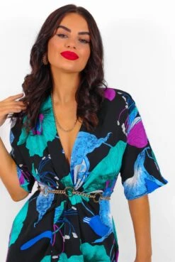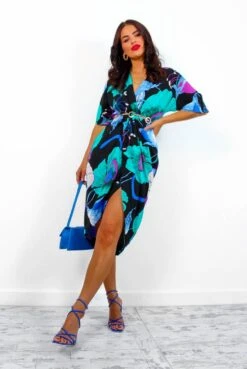 Take a pitcher, it’ll last longer. In a midi-length, this dress features a gorgeous turquoise floral print throughout, a tailored fit with three-quarter floaty sleeves, and a flattering wrap-style bottom. Stand out in the crowd with classic black accessories – sexy but sophisticated is always the vibe.