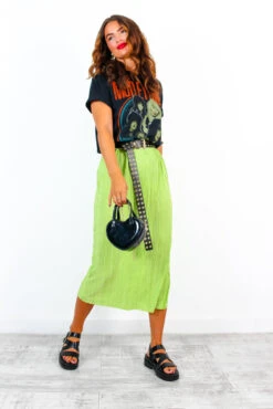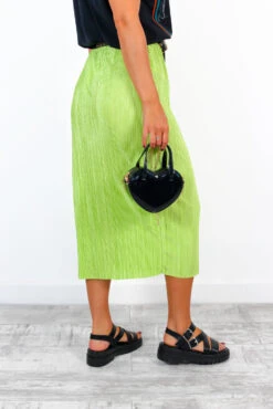 So what’ll it be, Doll, sassy or classy? Do as you please! Add a vibrant touch to your weekend wardrobe in this trendy plisse midi skirt. The perfect mix of sophistication and style, showing off a high rise and elasticated waist to give you that comfy flattering fit, this zesty lime midi is complete with a playful side split (of course!). Take it to festival season in our