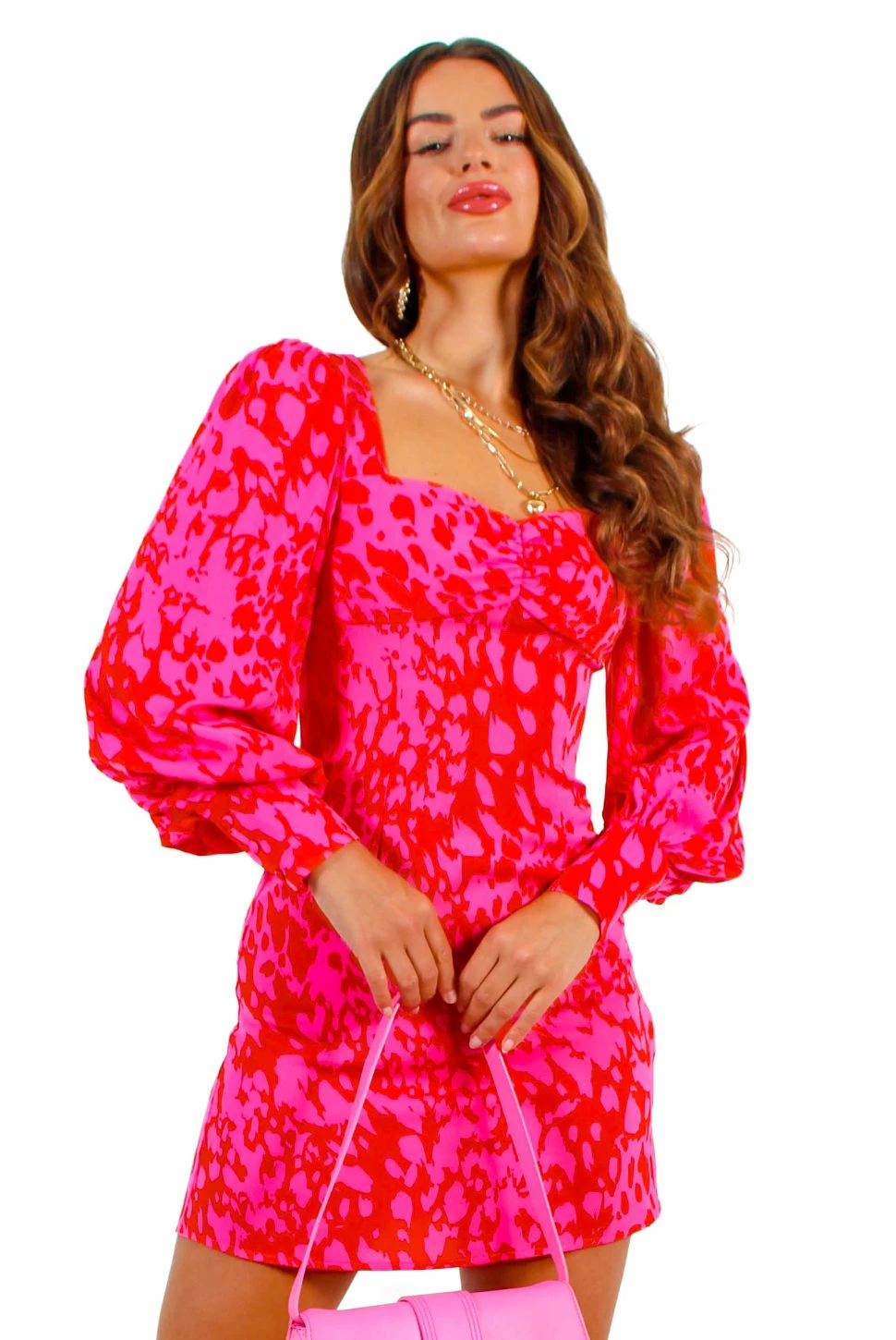 Leopard print is back in style, Doll! Whip up a frenzy in this fierce animal print midi dress. Wildin’ out in all-over pink and red leopardĀ print, a flattering sweetheart neckline, short elasticated puff sleeves, and a thigh split for a hint of sass! Make your OH swoon next date night in strappy magenta heelsĀ and statement jewellery, orĀ nail that off-duty femme fatale look in platform sandals and oversized sunnies.