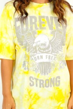 She’s a strong boss b*tch forever. This bold and vibrant tee features a sunny yellow tie dye pattern that screams confidence. With a “Forever Strong” graphic print serving as a daily reminder to slay all day, every day. Crafted with comfort and durability in mind, this t-shirt is ready to rock any off-duty look. Throw on over cycling shorts and chunky trainers for coffee dates in the park.Â