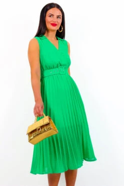 Flower power! This shoe-stopper midi features a pink and orange floral print throughout, short puffed sleeves, a high neck, and a split leg, plus a material tie on the rear to give some shape. Pair with a blue or pink mule for whichever event has the most wine!