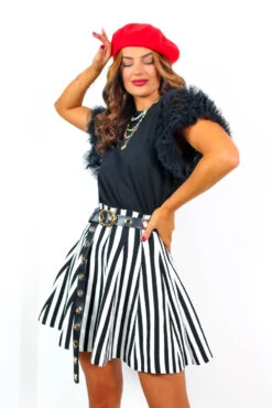 Being fashionably late is never too late, it’s right on time! Be at the top of your ‘casual’ tee game and totally freshen up your off-duty style. Your what to wear dilemmas are no more as this t-shirt brings all the drama with its tulle ruffled sleeves! Style with high waisted leather trousers and neon pink accessories for a night in the town with the Dolls and prepare to get heads turning.Â