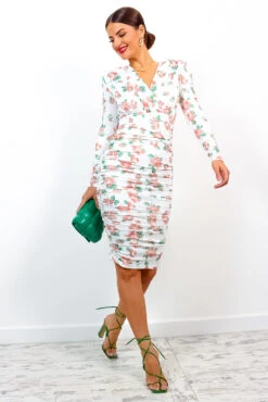Florals for Spring? Ground-breaking. Florals for all-year-round? Revolutionary! In a fresh white, this midi is peppered with romanticĀ roses throughout. With long sleeves and flattering ruched detailing, this figure hugging bodycon dress is complete with shoulder padsĀ for a sharp silhouette. Bag this now for your next special occasion, ready to style with a barely there heel and our favourite accessory – a glass of champers!