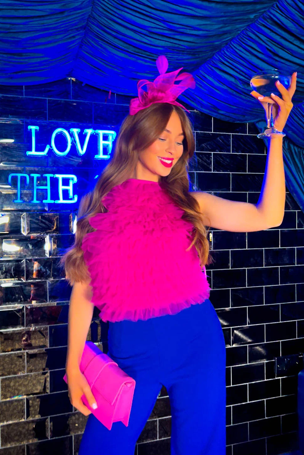 You’re sure tulle steal all the stares in this stunner. In a halter neck style, cascading in tulle ruffles we just can’t get enough of this punchy fuchsia pink top! Style with a denim mini skirt and western style cowboy boots for the ultimate festival chick look.